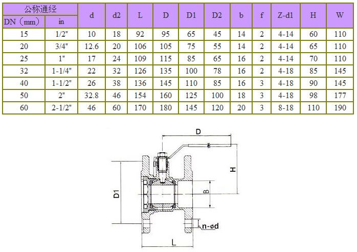 三、Q41F-16T 黃銅法蘭球閥PN1.6MPa主要連接尺寸及重量